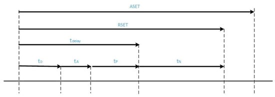 ASET is the critical time when the smoke develops to a condition threatening human life in a fire accident. RSET refers to the time interval from the moment of fire to the evacuation of evacuees to a safe area, which generally includes the following components: