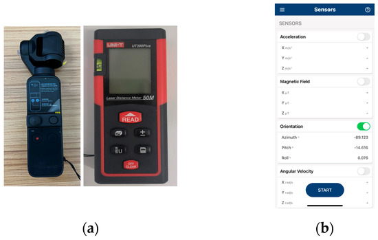 (a) DJI Pocket2 and laser rangefinder; (b) MATLAB Mobile.