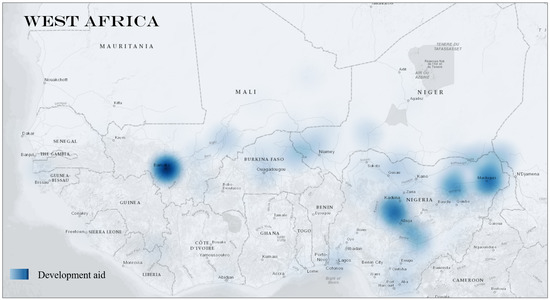 Figure 4. The hotspots of locations mentioned in articles that are mostly concerned with the theme of Development aid.