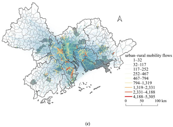 12]. Suburban areas surrounding metropolises and regional key node cities, which dominated the exchange connections in the URM network, have been the spatial focus for understanding the urban–rural integration process in PRD [