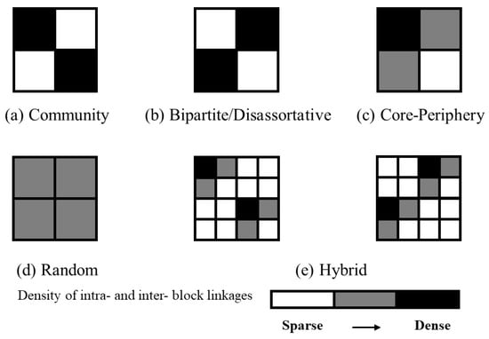47] demonstrated that the multicommunity structure in the worldwide air-transportation network leads to anomalies in centrality values. Core–periphery, community, stochastic, hybrid structures, mesoscale, and variant types of mesoscale include those which have been recognized in urban networks [