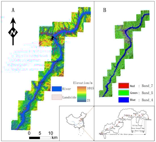 In this paper, Wanzhou District [24,25] of Chongqing City is taken as the research target. As shown in Figure 1, the thumbnail located at the bottom of this image provides a revealing glimpse into the selection process for the study area, which was carefully chosen from the Three Gorges reservoir area in the middle section of the Yangtze River in China.