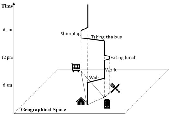 - Forer, P. Geometric approaches to the nexus of time, space, and microprocess: Implementing a practical model for mundane socio-spatial systems. In Spatial and Temporal Reasoning in Geographic Information Systems; Oxford University Press: Oxford, UK, 1998; pp. 171–190. [Google Scholar]