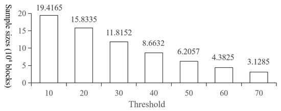 Number of training samples under different threshold values.