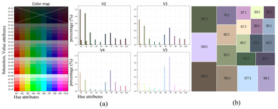 Building façade color distribution in Changning District. (a) Color map; (b) Tree map of dominant colors.