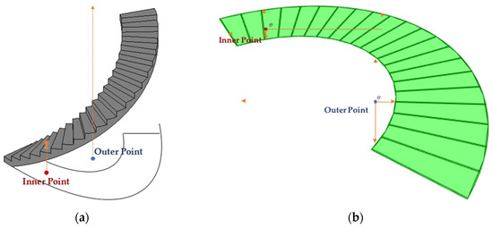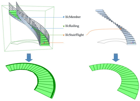 - Lin, W.Y. Automatic generation of high-accuracy stair paths for straight, spiral, and winder stairs using IFC-based models. ISPRS Int. J. Geo-Inf. 2020, 9, 215. [Google Scholar] [CrossRef]