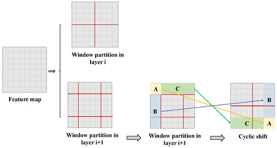 Spatial partitioning could influence feature learning by an attention mechanism. As shown in Figure 2, W-MSA and SW-MSA adopt different window partitioning strategies; they are used alternately in FFBs to obtain the global features from every part of the image.