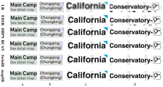 Results of map text reconstruction (2X). Subgraph (a–d) respectively denote the results of text reconstruction from four selected experimental groups.