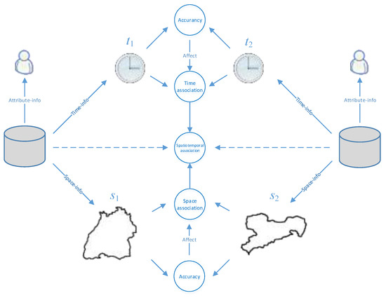 Different geographic elements or phenomena could cover different spatiotemporal scales, so it is necessary to choose a suitable scale according to the spatiotemporal data to measure its uncertainty. In general, it could be considered that the smaller the spatiotemporal range covered by a spatiotemporal attribute, the higher the certainty of its spatiotemporal information. When the spatiotemporal range is small enough, we consider that the spatiotemporal data contains spatiotemporal explicit information. Based on this premise, we adopt a quantifiable benchmark for measuring the uncertainty of spatiotemporal information.