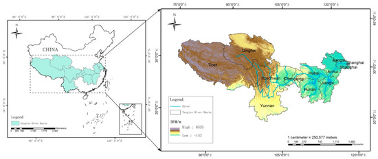 Study area of 11 provinces (cities) in the YRB, China.