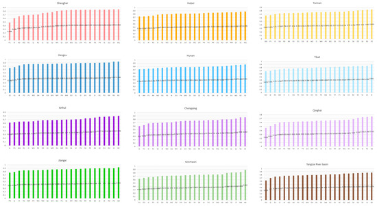 Secondly, the development of forest conditions in Tibet and Shanghai was unstable during the study period. However, Shanghai is well deserving of being in second place because of its strong policy, financial, and human resources to maintain the ecological status of the forest. It is worth noting that the artificial forest system built in Shanghai is imperfect and unstable. In addition, Tibet has a higher overall index than Shanghai and ranks first in the overall index. This is since Tibet is one of the provinces (regions) with the richest forest resources in China and, compared to Shanghai, Tibet is extremely rich in forest vegetation. Moreover, the low annual temperature difference in Tibet can prolong the growth period of forest trees, which is beneficial to the growth of forest trees.