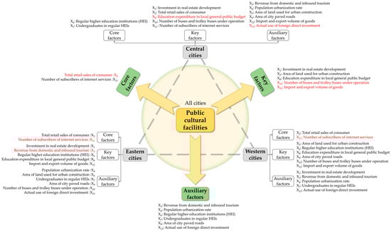 (4) The 285 cities were classified into four policy zonings of star, cow, question, and dog cities, based on the proportion and increment of the number of public cultural facilities in China. Star cities should maintain their status quo without involving too much policy intervention, with the core and important factors being the focus of policy in dog cities and cow cities and the auxiliary factors being the focus of policy for question cities. In addition, this paper also suggests that public cultural facility development policies need to be tailored according to the differences in the way factors work in different regions in the east, middle, and west.