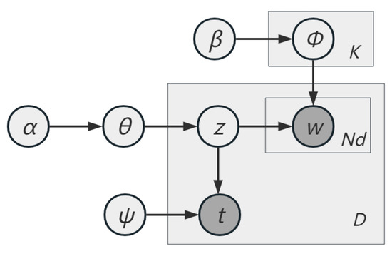 Most extended probabilistic topic models redefined the assumptions of the document generation process to solve the limitation of existing topic models; then, latent topics were derived based on the results of parametric statistical inference. Blei et al. [15] changed the Dirichlet prior distribution of the LDA model to a logistic-normal distribution and obtained a correlated topic model by increasing the correlations between latent topics, and found that an estimated Correlated Topic Model (CTM) can be used to explore otherwise unstructured observed documents. Li et al. [16] obtained the labeled-LDA model by building the documents’ category levels, which weakened the phenomenon wherein topics that did not belong were forcibly assigned to certain documents in the LDA model.