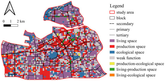 - Fu, C.; Tu, X.; Huang, A. Identification and Characterization of Production–Living–Ecological Space in a Central Urban Area Based on POI Data: A Case Study for Wuhan, China. Sustainability 2021, 13, 7691. [Google Scholar] [CrossRef]