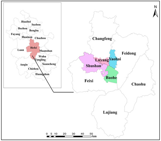 The case study area: urban area of Hefei, China (117.27° N, 31.86° E).
