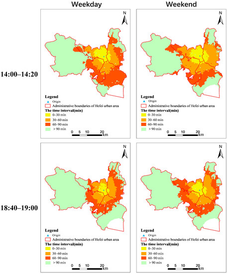 - Weber, J.; Kwan, M.P. Bringing time back in: A study on the influence of travel time variations and facility opening hours on individual accessibility. Prof. Geogr. 2002, 54, 226–240. [Google Scholar] [CrossRef]