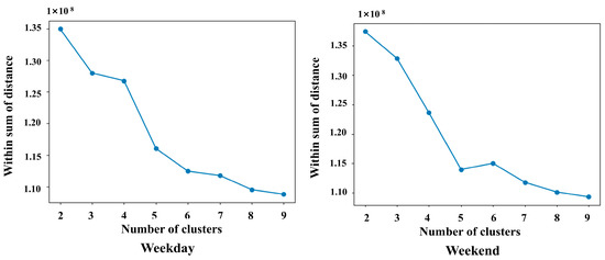 The results of elbow method for weekday and weekend.