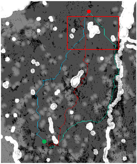 - Antikainen, H. Using the hierarchical pathfinding A* algorithm in GIS to find paths through rasters with nonuniform traversal cost. Isprs Int. J.-Geo-Inf. 2013, 2, 996–1014. [Google Scholar] [CrossRef]
