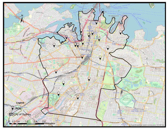 The distribution map of POIs within the City of Sydney.