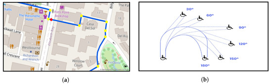- Kasemsuppakorn, P.; Karimi, H.A.; Ding, D.; Ojeda, M.A. Understanding route choices for wheelchair navigation. Disabil. Rehabil. Assist. Technol. 2015, 10, 198–210. [Google Scholar] [CrossRef]