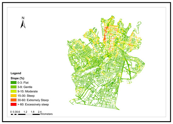 Road gradient map of the study area.