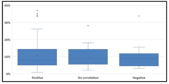 In the next step, the sinuosity deviation (%) and distance difference (%) of OSM routes from the corresponding Google Maps routes are estimated. Furthermore, to better perceive to what degree route length is affected by route curviness, the relationship between the sinuosity deviation and distance difference is evaluated using Spearman’s rank correlation. Then, the ANOVA test compares variances across the means of dissimilarity ratios for three correlation groups: (a) positive, (b) negative, and (c) no correlation.