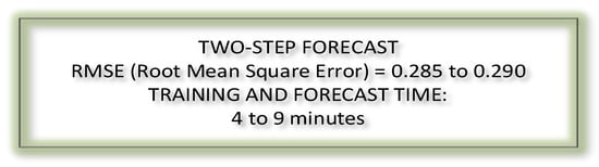 Classical Model for Multivariate Time Series, SPARSE type: the classic model for sparse-type multivariate time series, VAR-SPARSE (vector auto-regressive sparse), which is only available for the R programming language through its libraries “bigtime” [], and “sparsevar” [], was also tested. However, it was not functional because, even for a small multivariate time series, its convergence was very slow and it took hours to converge. In addition, its consumption of RAM (random access memory) was too high and not justified by the satisfactory performance of the model.