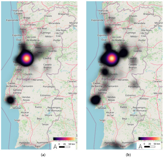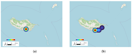 Heatmap in the Madeira islands. (a) Madeira 2020. (b) Madeira 2021.