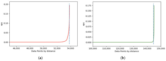 Elbow/Knee method to detect the ideal eps. (a) 2020. (b) 2021.