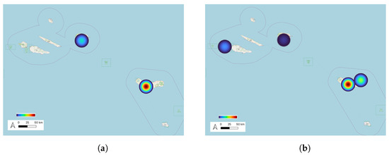 Heatmap in the Azores islands. (a) Azores 2020. (b) Azores 2021.