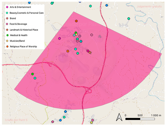 A POI is an entity of interest with a well-defined location. There is a wide range of POIs such as famous landmarks (e.g., museums, churches, towers), natural attractions (e.g., bays, coasts, waterfalls), or commonplace spots (e.g., coffee shops, taverns) [39]. The spatial distributions of POIs and the characteristics of the areas reveal different urban functions which can be associated with activities. For different types of activities (e.g., sports, eating, shopping), people can usually go to specific areas [8]. Data taken from location-based social networks are important for a wide range of research areas, providing new opportunities for analyzing urban dynamics and structures. Facebook is probably one of the most popular social networks to connect with others. In 2010, the Facebook social network launched Facebook Places, a location-based service that allows users to check into POIs and share their physical location with friends [40].