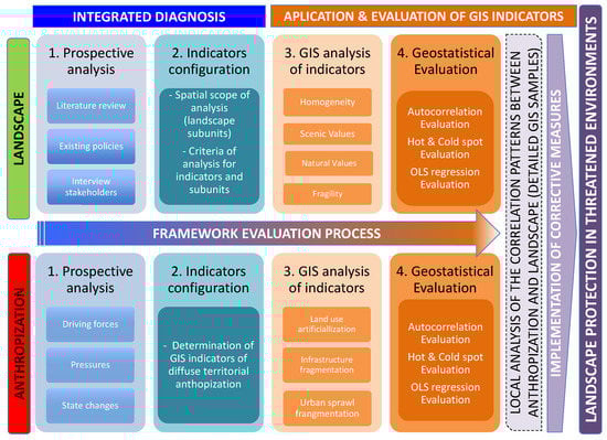 The relationship between the spatial distribution of the landscape and anthropization GIS indicators is addressed through a three-phased geostatistical evaluation using geoprocessing tools from GvSIG desktop 2.5.1 (GvSIG Association, Valencia, Spain) and the spatial statistical package from ArcGIS 10.5 (Esri, Redlands CA, USA).