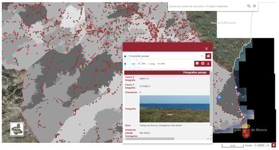 Sample of the geolocated dataset (red spots) of the Landscape Atlas SDI from the region of Murcia [].