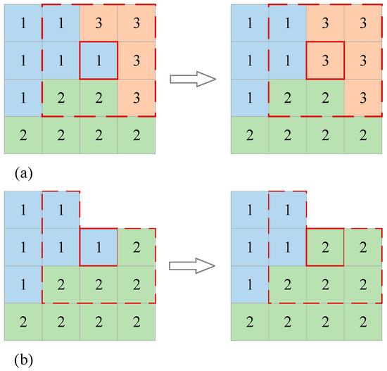 | 4. | Update the number of the target grid with the mode of the neighborhood numbers |