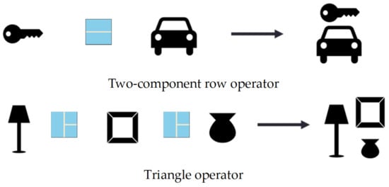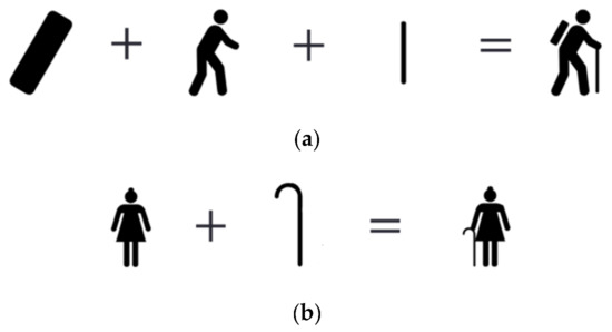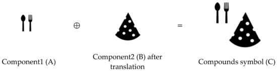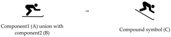 A union operator is an operator designed to combine two or more components from any direction into a new complex component. For example, the compound symbol of the “traveler” in the following symbol is formed by fusing the three components of “human”, “backpack”, and “walking stick” (see Figure 4).