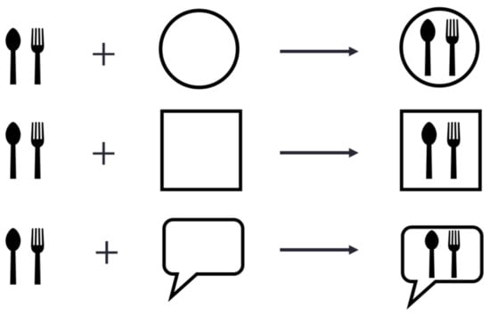 Some cartographers noticed that the shape of the frame affects the user’s understanding of the semantics of the symbol and used different shapes of frames to express different phenomena when designing symbols. For example, the NATO Joint Military Symbology devised by the US Army Corps of Engineers [16] and a standard set of symbols for use in the emergency management and first responder communities developed by the Federal Geographic Data Committee (FGDC) Homeland Security Working Group [17]. With the popularity of symbols for commercial purposes, it has been found that subjective preference may affect the success or failure of symbol design [18,19]. People do prefer different frames for different symbols, but the circle and square are most preferred. Frame operators are primarily used to generate frames. We assume that the symbol is placed in the geometric center of the frame. We consider the three types of frame operators, i.e., circle, rectangle, and triangle (see Figure 6).