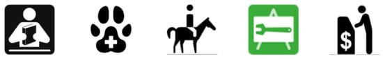 - Stevens, J.E.; Robinson, A.C.; MacEachren, A.M. Designing Map Symbols for Mobile Devices: Challenges, Best Practices and the Utilization of Skeuomorphism. In Proceedings of the 26th International Cartographic Conference, Dresden, Germany, 25–30 August 2013. [Google Scholar]
