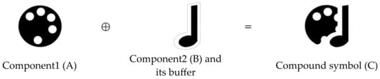 For example, in the symbol of “art center” (see Figure 12), the buffer of the note component is on the right of the palette. After the buffer is built, the component on the left overlaps. We take the incomplete graphics that have been overlapped and the graphics that do not build buffers and combine them into new compound symbols. The formal representations of translation modifications are as follows: