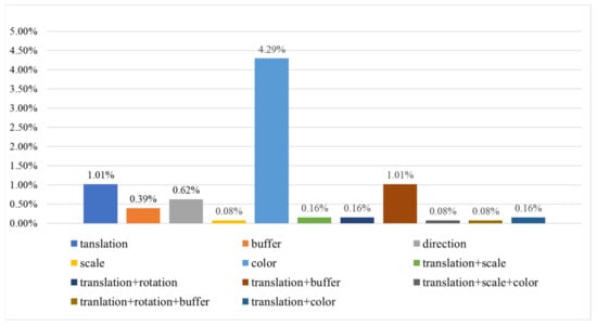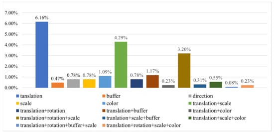 After statistics, it was found that, in group C1, 6.01% of the map symbols only need metric modifications or color modifications to complete the formal representations, and the remaining 2.03% need both additional operators and modifications to complete them. The usage of each modification is illustrated in Figure 19.