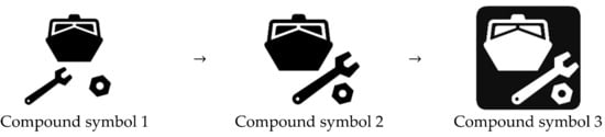 According to semantics, the symbolic elements we extracted are the graphics of “boat”, “wrench”, and “nut”. In the second step, we adopted a three-unit structure, such as a triangle structure, to construct symbols. Figure 22 shows the structure operation of the compound symbol.