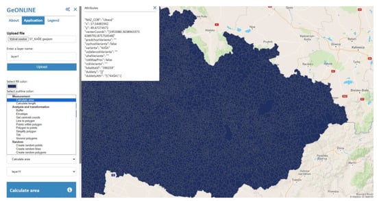 Tools supporting spatial analysis are taking spatial data processing to a new level. They bring a higher level of interactivity. Analytical data processing can be performed in real time or based on individual user parameters (e.g., buffer distance, hot spot limit, attribute field selection, etc.) []. Geographic and geoinformatic analyses are now common practices in the desktop environment, and they are used routinely. Similarly, web mapping applications have become so established that they are now part of the daily habits of millions of users [] on a global, national and regional level within numerous settings [,,,]. The next step reflecting the evolution of WebGIS (such as the combination of GIS within the web platform) is the implementation of spatial features and advanced analysis directly into online map libraries []. Cloud-computing-based applications are already following this trend []. Applications such as ArcGIS Online already offer more or less analytical functions in their environment, i.e., tools and functionalities, which were, until recently, the prerogative of desktop-based solutions only. The list of simple operations, such as line/area measurement, buffer or heat map generation, is being extended with non-trivial geoprocessing operations, e.g., intersect, clip or calculate centroids. This functionality thus takes the use and deployment of GIS tools to the next level for both laymen and experts [].