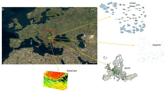 The smart integration of earth observation (EO) raster data cubes has been extensively investigated from multiple aspects. While many works have focused on providing an accurate formalization and algebra to properly represent and manipulate this concept, considering it a special case of multidimensional arrays [1,2], other works have focused on effective processing and analyzing raster data cubes. These works started with the proposal of array database systems such as SciDB [11] or Rasdaman [12], up to the development of an appropriate advanced infrastructure capable of supporting such a task with high performance and appropriate scalability on a large amount of data [13,14,15,16].