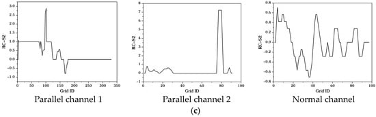 The DC-Points of the three channels shown in Figure 1 were computed, and the curves of the rate change of S2 were redrawn (Figure 9). And then a parameter named RCD can be defined to identify parallel channels as follows: