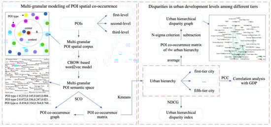 Figure 3. A framework to reveal the imbalance in urban development from the perspective of POI spatial co-occurrence patterns.