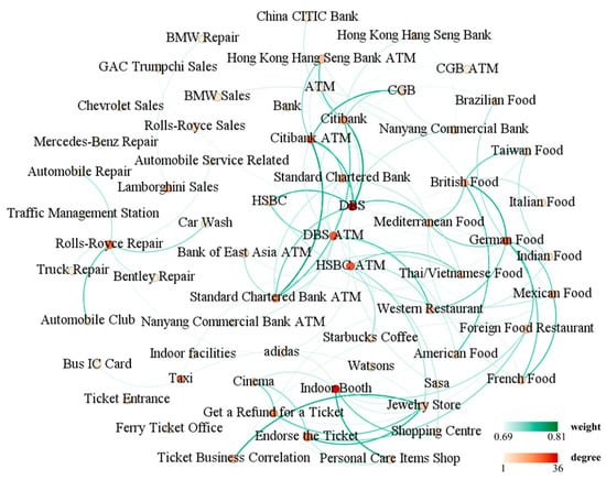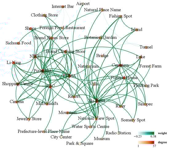 Figure 8. The POI co-occurrence graph at level 3 consists of POI pairs that are correlated with GDP.