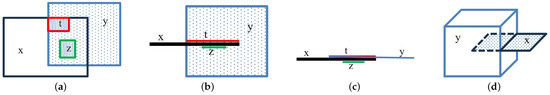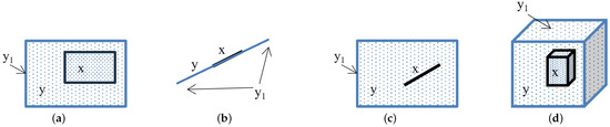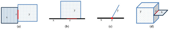 Therefore, we must impose constraints on the dimensions of boundaries. Let us start with the definition of the relation. We use the relation similarly to how it was defined in [41]. The relation between two features x and y indicates that the dimension of x is less than or equal to the dimension of y. We also consider the corresponding strict order relation and the equality relation . If we indicate with the whole domain of spatial features, the relation obeys the total order axioms: