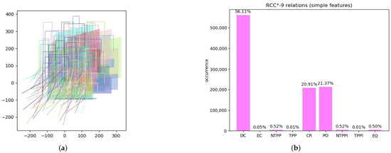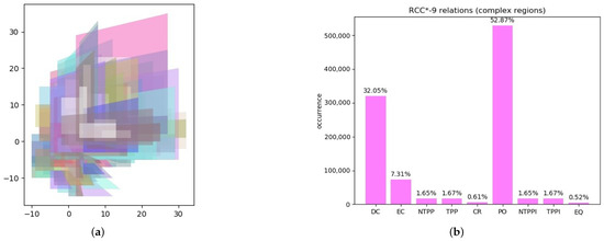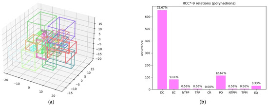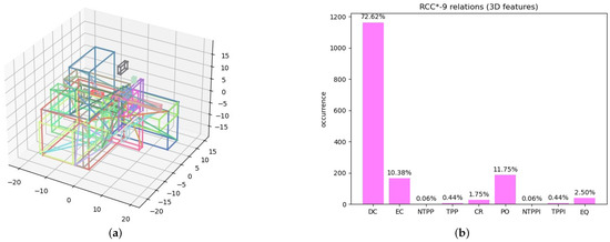 Experiment 6: (a) random generation of 3D features; (b) percentages of obtained RCC*-9 relations.