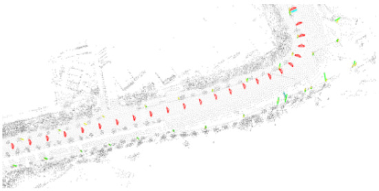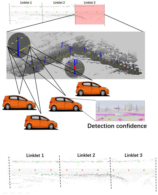 Here, we adopted the approach used in [31] to ensure a more-accurate reconstruction of pole-like elements. The reconstruction result of this approach can be seen in Figure 5 where the poles along the linklet area of a vehicle are reconstructed.