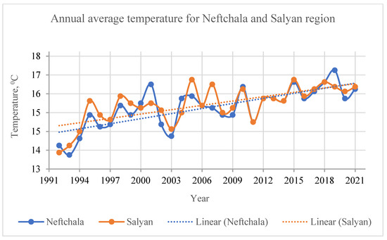 Temperature trends for Neftchala and Salyan regions [19,20].