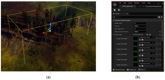 Procedural Foliage Spawner: (a) inside the bounding box; (b) details tab.